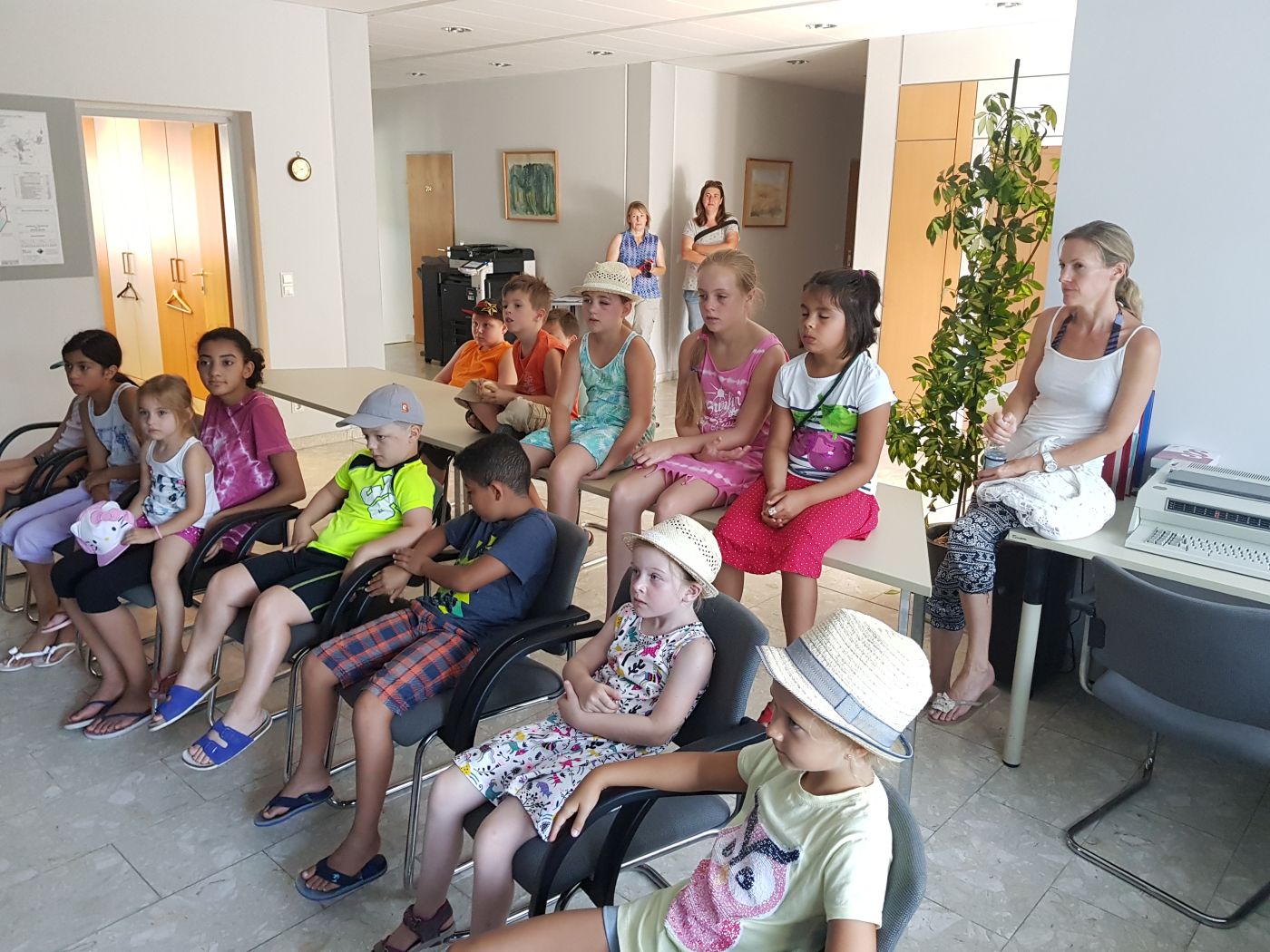 Trotz des so heißen Wetters kamen 14 Kinder und 2 Eltern samt dem Betreuerteam rund um „Angi“ Auer zu uns. Das freut uns ganz besonders!