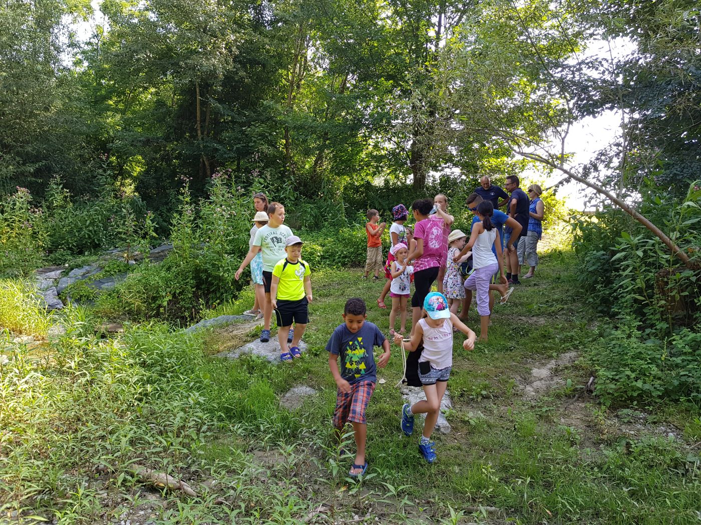 Obwohl die Kinder sehr an den Vorgängen auf einer Kläranlage interessiert und auch sehr aufmerksam waren, war der Abschluss der Führung in der Leitha an diesem Tag sehr angenehm. Auch die darauf folgende Jause wurde genossen!